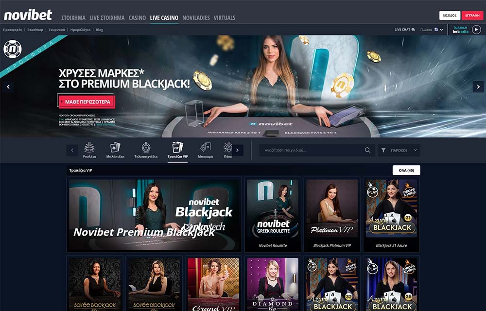 Αυτά που ξεχωρίζουν είναι τα αποκλειστικά Novibet τραπέζια με Έλληνες dealers σε Ρουλέτα και Μπλάκτζακ.